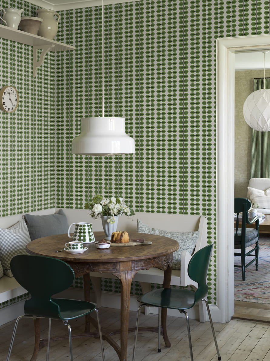 Tapeta stylizowane liście Boras Tapeter Berså Icons przyciąga uwagę rytmicznym, graficznym układem roślinnych motywów, które tworzą elegancką, uporządkowaną kompozycję. Wzór jest bezpośrednim nawiązaniem do słynnego motywu znanego ze szwedzkiej porcelany, dzięki czemu wnosi do wnętrza autentyczny, designerski rodowód. Stylizowane liście mają dekoracyjny charakter, a jednocześnie pozostają lekkie i przyjazne w odbiorze. Całość buduje wrażenie harmonii i konsekwencji, tak cenionej w skandynawskim wzornictwie. To propozycja dla osób, które szukają tapety z historią, ale podanej w nowoczesny, dopracowany sposób. Motyw jest wyrazisty, a przy tym na tyle ponadczasowy, że nie dominuje aranżacji, tylko nadaje jej charakter.