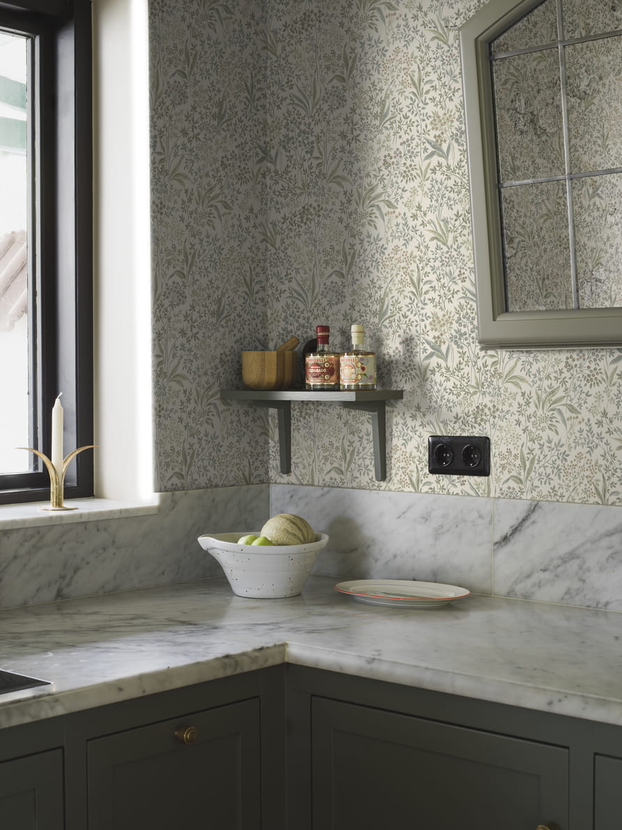 Tapeta roślinna Boras Tapeter Nocturne Icons zachwyca ponadczasowym motywem, który przywodzi na myśl delikatny zielnik i spokojną, skandynawską łąkę. Rysunek tworzą różnorodne liście przeplatające się w naturalnym rytmie, jakby układały się w subtelny botaniczny krajobraz. Kompozycja jest bogata, a jednocześnie lekka wizualnie, dzięki czemu dekoruje ścianę bez wrażenia ciężkości. Wzór prowadzi wzrok po powierzchni, budując wrażenie harmonii i uporządkowania. To propozycja dla osób, które cenią roślinne inspiracje w eleganckiej, dopracowanej formie. Całość tworzy spokojne tło dla wnętrza, w którym natura staje się główną ozdobą.
