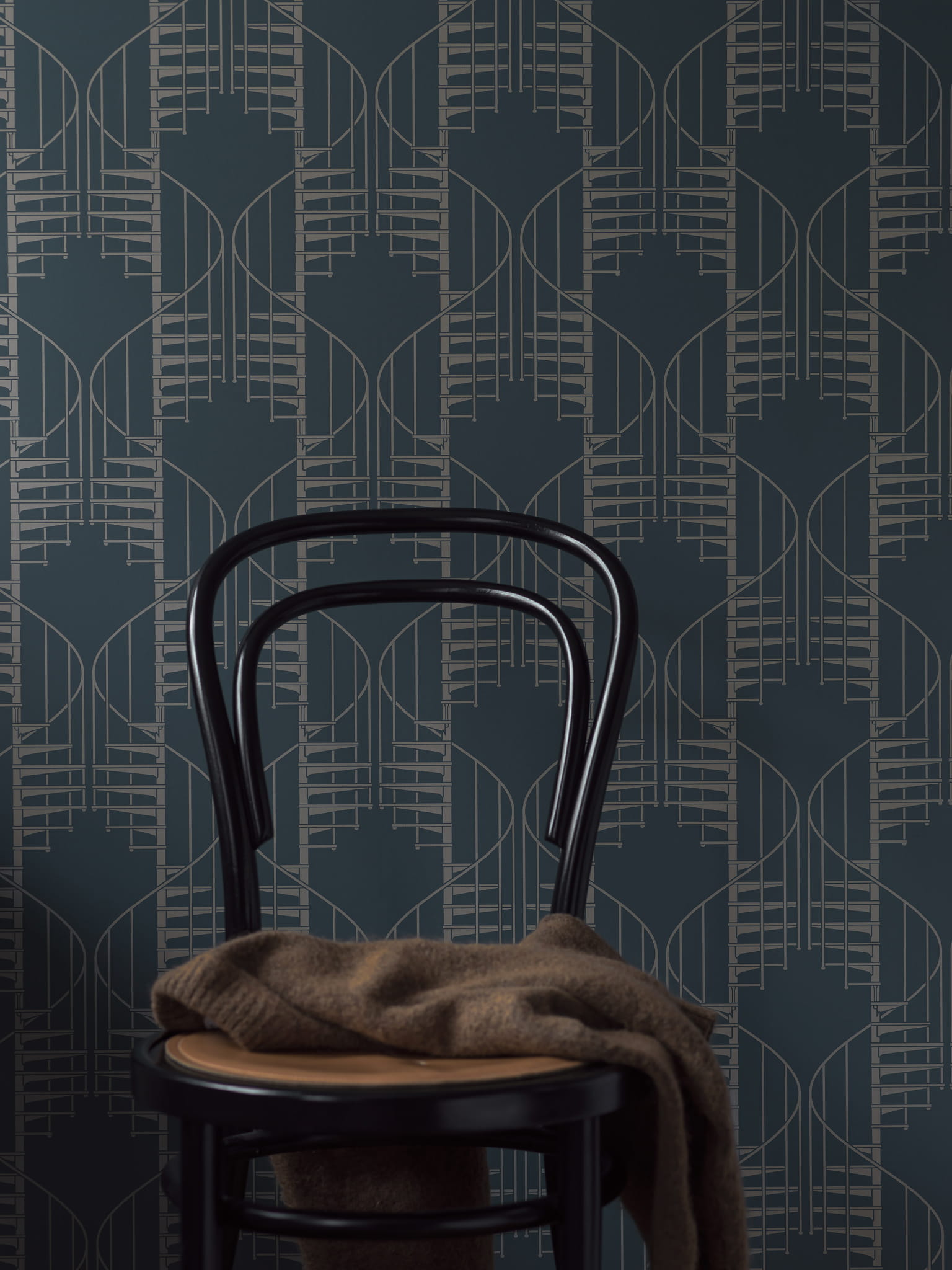 Niezwykły wzór „Staircase” pierwotnie był narysowany w latach 50-tych przez dońskiego architekta Benta Karlby'ego. Spotkać tu można zabawny świt geometrii, gdzie na pierwszy rzut oka wydaje się, że widzimy falisty kształt medalionów lub koniczyny marokańskiej, jednak po bliższym przyjrzeniu ukazuje się projekt spiralnych schodów. Tapeta z nietypowym wzorem koniczyny marokańskiej stworzy luksusowe wnętrza z nutą stylu retro. Bardzo dobrze będzie się prezentować w salonie jadalni praz sypialni. Projekt występuje w trzech odsłonach kolorystycznych, pochodzi od szwedzkiej marki BorasTapeter z katalogu Treasured.