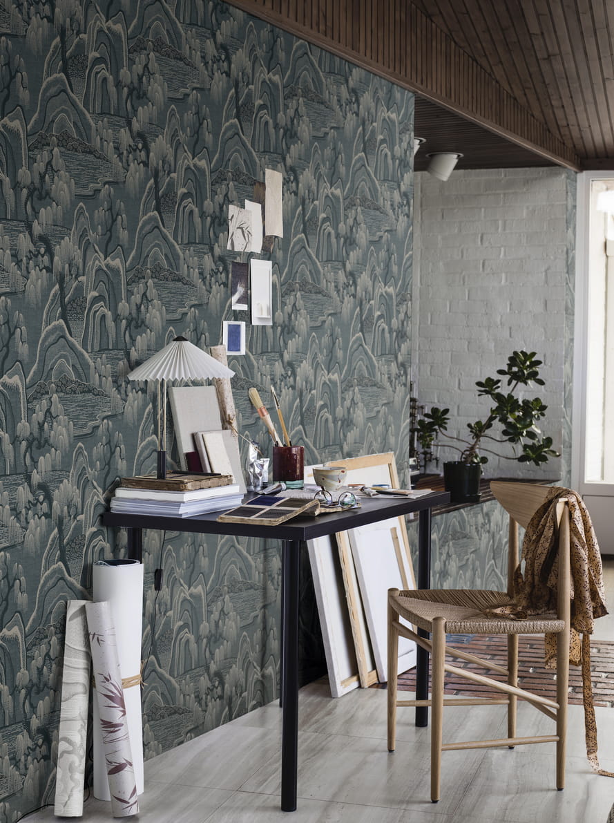 Ten wzór przenosi na ścianę spokojny pejzaż, w którym natura staje się tłem do codziennego wyciszenia. Kompozycja jest zbudowana z drobnych kropek i precyzyjnych linii, które nadają całości rytm oraz subtelną dynamikę. Inspiracją dla projektu były kimona oraz starsze chińskie obrazy, gdzie górskie szczyty układają się warstwa po warstwie. Dzięki takiemu prowadzeniu motywu krajobraz zyskuje napięcie, a jednocześnie pozostaje harmonijny i uporządkowany. Ilustracyjny charakter wzoru przyciąga wzrok detalem, ale nie dominuje przestrzeni. Tapeta japoński krajobraz Boras Tapeter Indigo Garden Icons tworzy wrażenie głębi, które elegancko buduje perspektywę na większej powierzchni ściany.