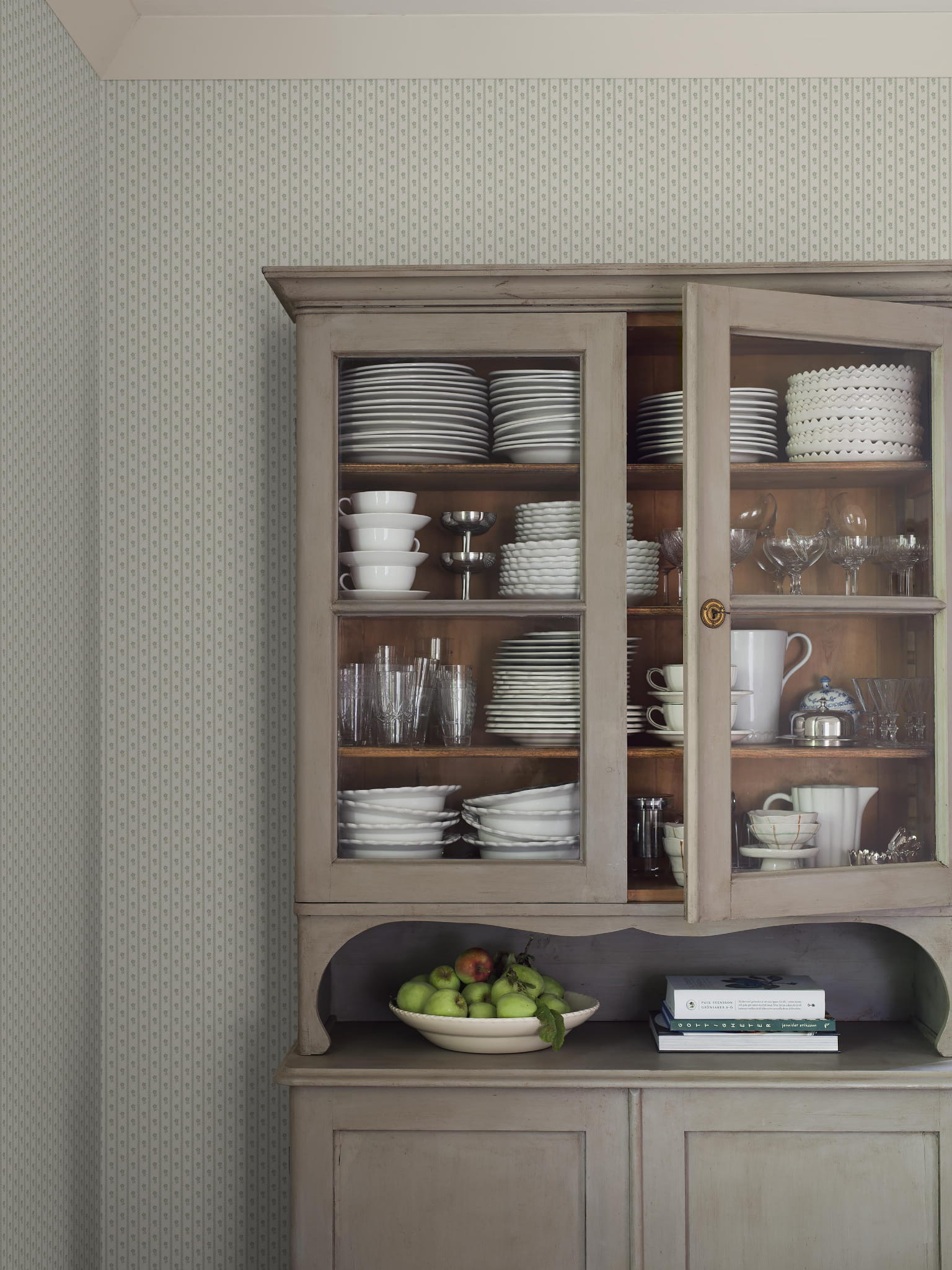6954 Österlen Tapeta w zielone paski i kwiatki