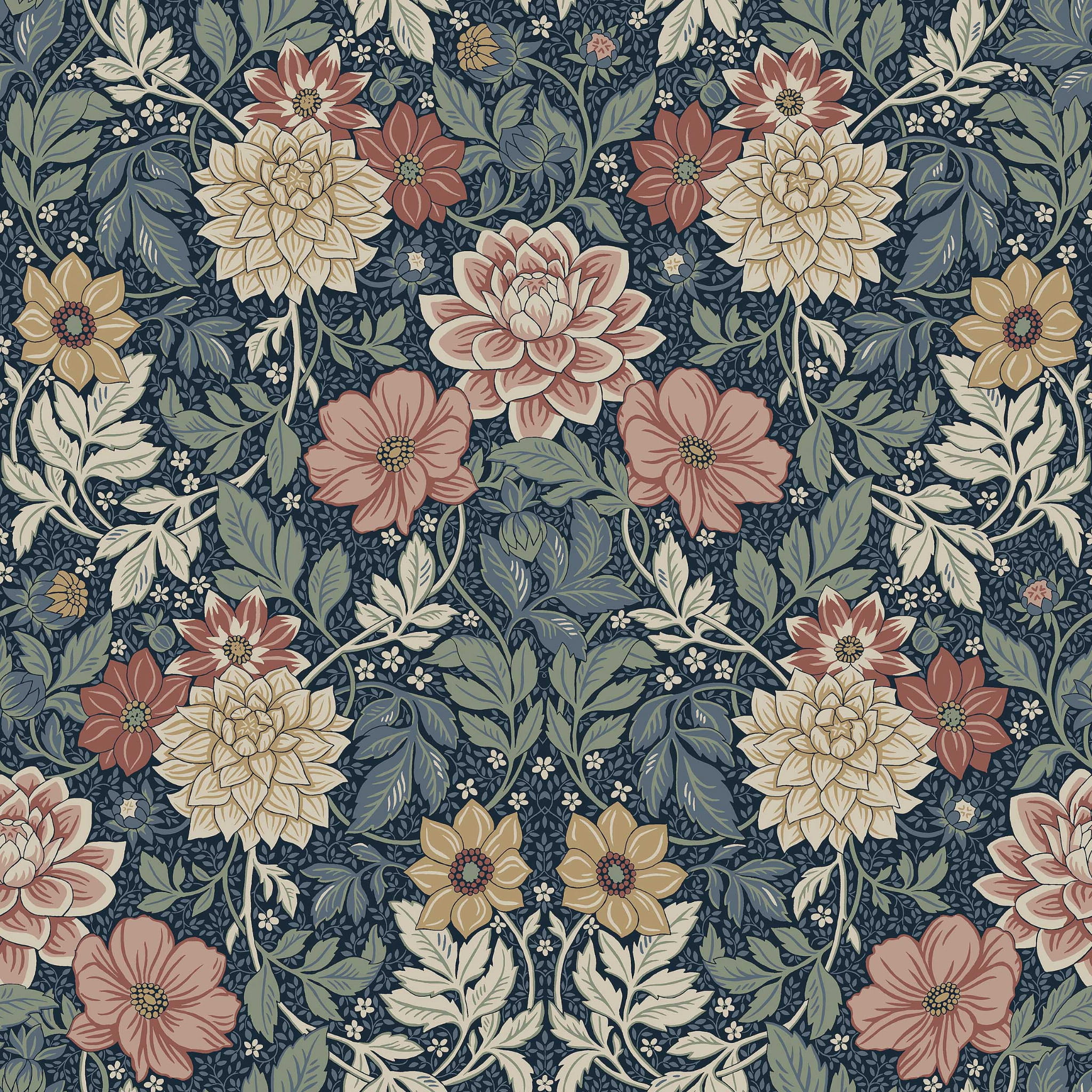 Tapeta kwiaty i liście Boras Tapeter 7665 Dahlia Garden Icons to dekoracja ścienna, która wprowadza do wnętrza dopracowaną, botaniczną opowieść w duchu vintage. Wzór budują soczyste dalie oraz kwiaty kosmosu, przeplatane delikatnymi liśćmi, tworząc kompozycję pełną rytmu i finezyjnych detali. Inspiracja ruchem Arts & Crafts jest tu wyczuwalna w rysunku roślin, naturalności układu i wrażeniu rękodzielniczej staranności. Motyw jest bogaty, ale uporządkowany, dzięki czemu przyciąga wzrok bez wrażenia chaosu. To propozycja dla osób, które cenią dekoracje z charakterem, a jednocześnie chcą zachować elegancki, ponadczasowy efekt. Całość działa jak subtelny ogród na ścianie, w którym każdy element ma swoje miejsce.