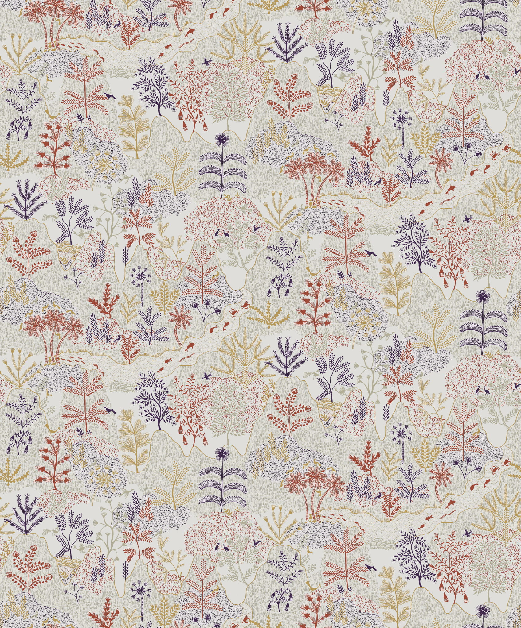 Niebanalny wzór prezentujący krajobraz ogrodu znajdującego się na dziedzińcu pałacu Bahia w Marrakeszu. Botaniczna tapeta wprowadzi do wnętrz odrobinę orientalnego klimatu, przepięknie będzie się prezentować na dekoracyjnej części w salonie, jadalni oraz sypialni. Olśniewający wzór jest pełen szczegółów, dostrzec tu można drzewa, ścieżki górki, rośliny oraz latające i odpoczywające ptaki.