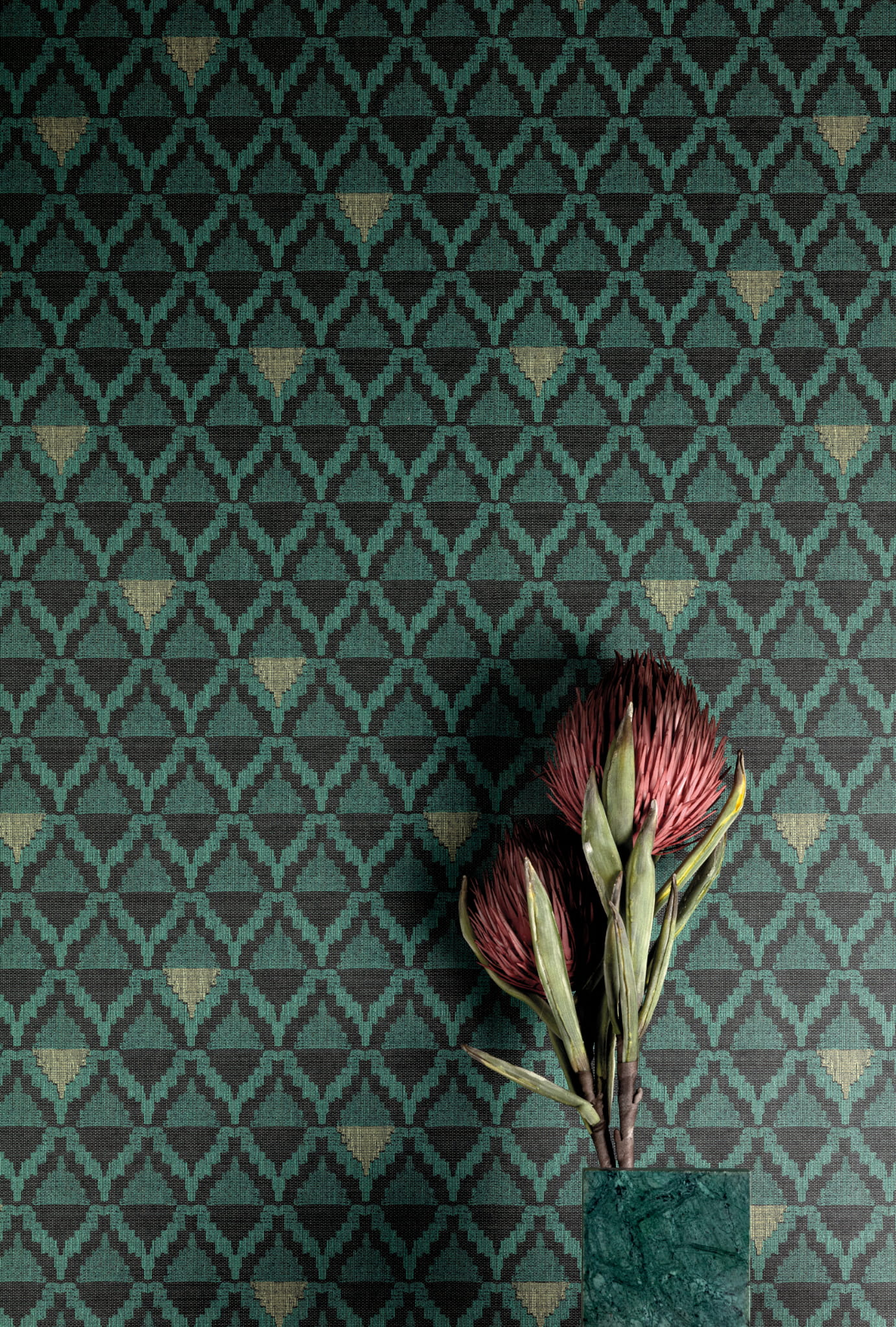 Etniczna tapeta ukazana w orientalnym stylu nawiązuje do bogatych i kolorowych straganów znajdujących się w Marrakeszu. Wzór został ozdobiony rombami, sprawdzi się jako mocny akcent dekoracyjny. Geometryczna tapeta idealnie będzie się prezentować w orientalnych aranżacjach sypialni, jadalni oraz jadalni. Etniczne motywy wprowadzają do wnętrz ciepłą i przytulną atmosferę. Wzór „Liliosa” pochodzi z kolekcji Bahia.