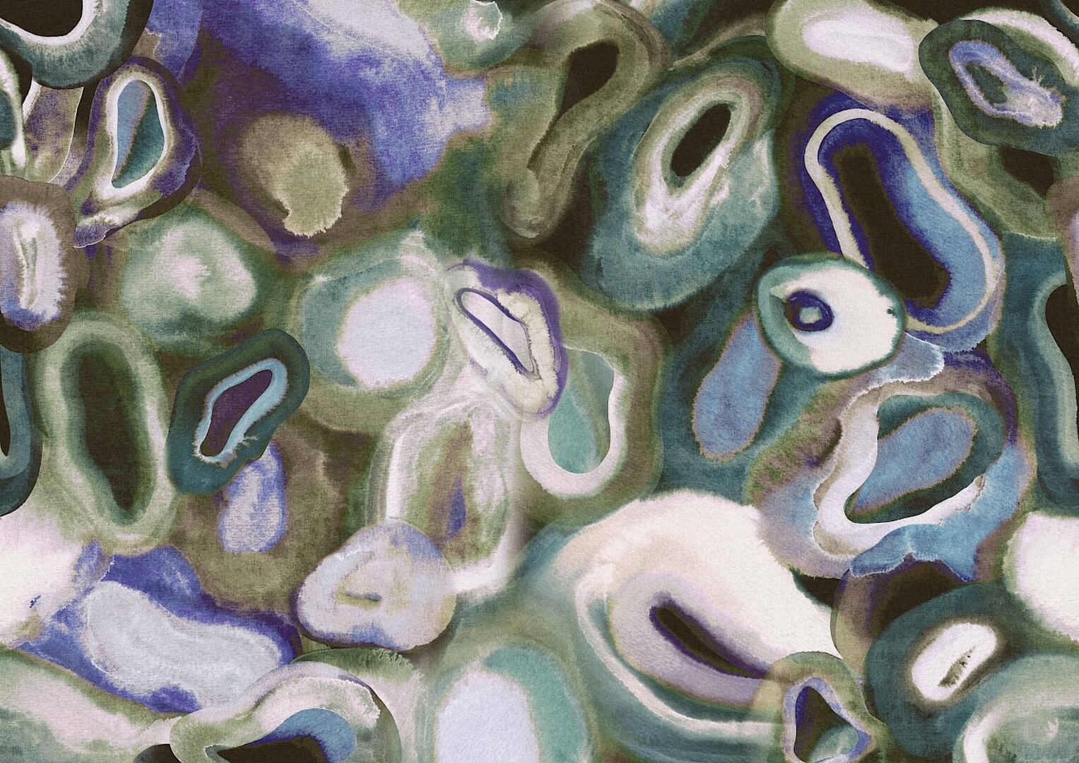 Ten mural przyciąga spokojem, jakby zatrzymywał w kadrze subtelny ruch materii. Miękkie, organiczne kształty układają się w kompozycję przypominającą artystyczny zapis procesu: przenikania, rozmycia i delikatnej erozji. Wzór ma w sobie efekt malarski, dzięki czemu ściana zyskuje wrażenie głębi i ręcznie tworzonej pracy. Abstrakcja jest tu wyważona i harmonijna, dlatego nie dominuje wnętrza, lecz nadaje mu wyrafinowany charakter. To propozycja dla osób, które szukają dekoracji z klasą, o spokojnej energii i wyczuwalnej, naturalnej inspiracji. Całość prezentuje się jak współczesny obraz, który buduje nastrój bez potrzeby dosłowności.