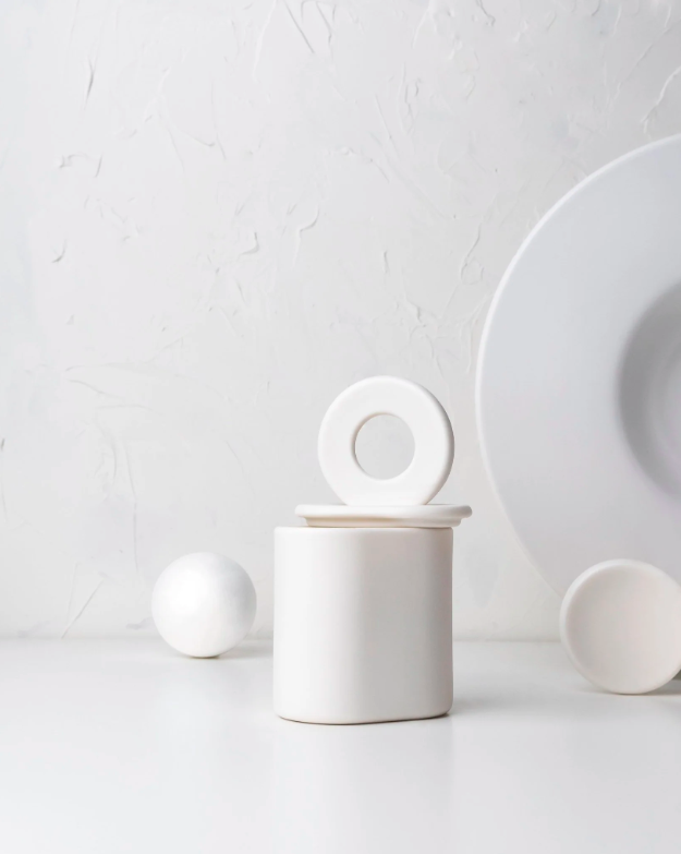 Naczynie zaprojektowane i wykonane w pracowni designu i manufakturze ceramiki w Milanówku. Porcelana parian jest niezwykle szlachetna, wyglądem przypomina biały marmur. Jest satynowa w dotyku i przepuszcza światło, co sprawia, że paląca się świeca pięknie rozświetla pomieszczenie.