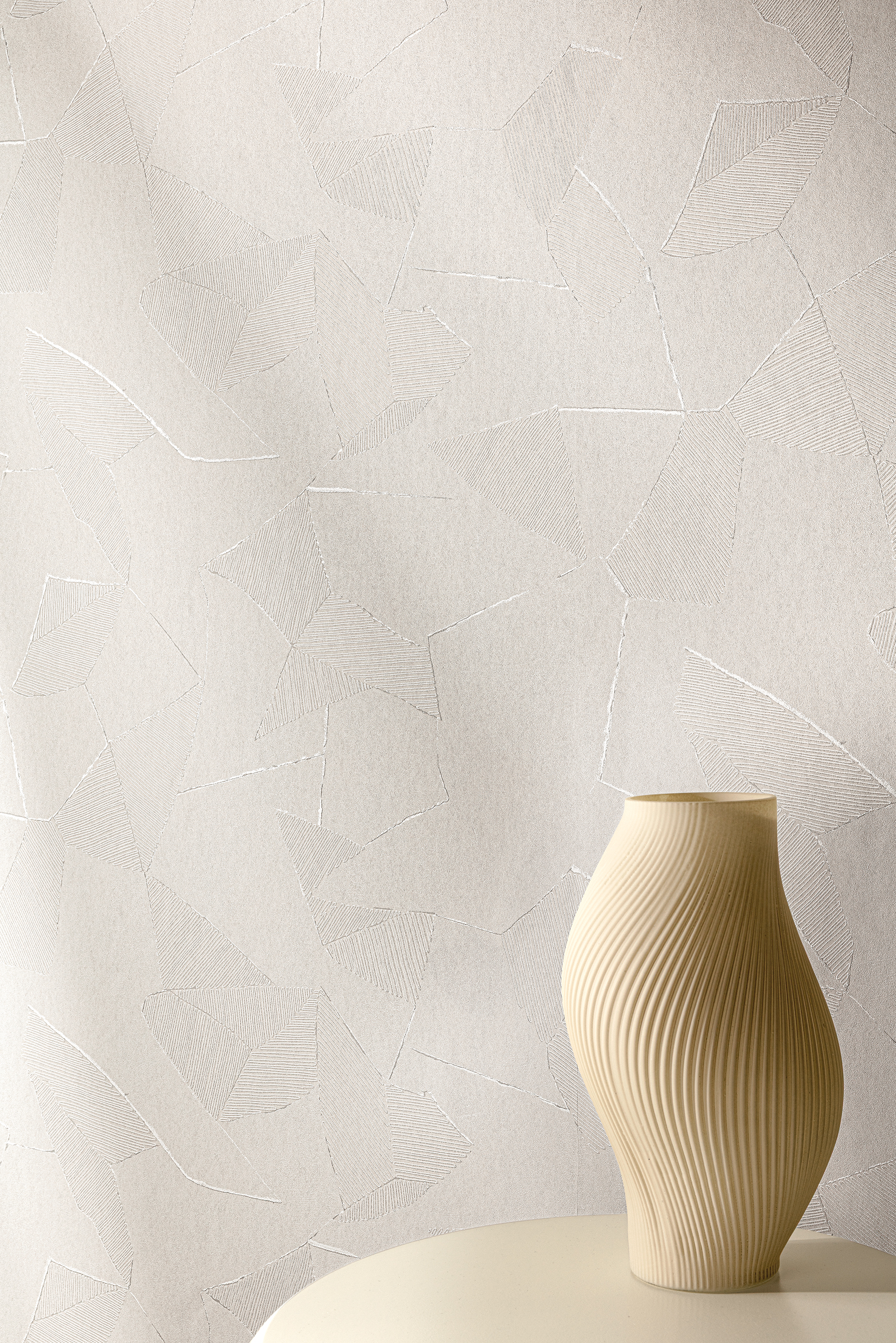 Wzór tej tapety buduje wrażenie spokojnej dyscypliny: geometryczne podziały układają się w nieregularny, a jednocześnie uporządkowany układ. Linie są subtelnie wyczuwalne, jakby schowane pod płaszczyznami, dzięki czemu dekoracja nie dominuje, lecz pracuje w tle. Całość przypomina strukturę powstałą naturalnie, gdzie granice form zarysowują się delikatnie i z wyczuciem. To propozycja dla wnętrz, w których liczy się detal i wyrafinowana prostota. Motyw pozostaje intrygujący z bliska, a z dystansu tworzy jednolitą, nowoczesną powierzchnię. Tapeta wnosi do przestrzeni wrażenie harmonii, które nie nudzi, tylko uspokaja.