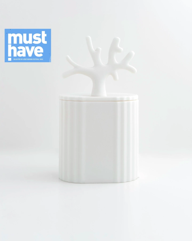 Naczynie zaprojektowane i wykonane w pracowni designu i manufakturze ceramiki w Milanówku. Porcelana parian jest niezwykle szlachetna, wyglądem przypomina biały marmur. Jest satynowa w dotyku i przepuszcza światło, co sprawia, że paląca się świeca pięknie rozświetla pomieszczenie.