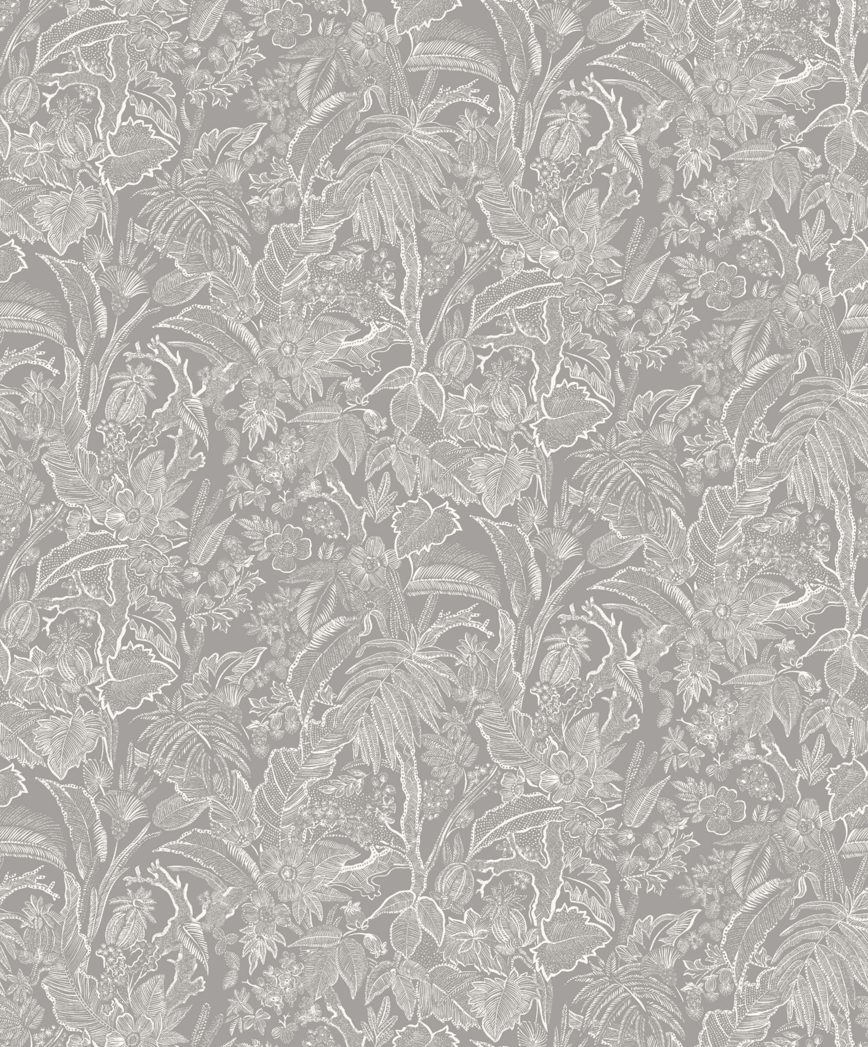 SUM501 Summer Tapeta szara, biała, małe kwiaty i liście