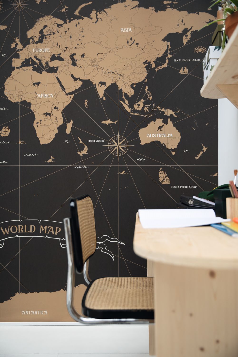 Mural mapa świata to wyjątkowa panorama, która przedstawia kontynenty świata, zachęcając do poznawania nowych miejsc. Projekt doskonale zaprezentuje się w charakterze akcentu na najważniejszej ścianie w pokoju młodzieżowym, zawiera funkcje edukacyjne, pozwoli rozwijać zainteresowania. Panel ścienny występuje w dwóch rozmiarach oraz w dwóch wariantach kolorystycznych. Pochodzi od francuskiej marki Caselio z katalogu Young & Free. To wyjątkowy i oryginalny katalog tapet ściennych i murali dekoracyjnych dedykowany młodzieży. Młodzi ludzie mają swój własny świat, w którym nigdy nie brakuje pomysłów i chęci zmiany. Francuska marka Caselio poświęciła im dużą serię wzorów, które są połączeniem współczesnych trendów i różnorodnych zainteresowań. Grafiki street art, wzory nawiązujące do podróży, tropikalne motywy, klasyczne paski, abstrakcyjne linie oraz interesujący kosmos. Wszystkie projekty pozwolą całkowicie odmienić pokój nastolatka i nadać mu wyjątkowego charakteru. Tapety z kolekcji Young & Free doskonale zaprezentują się również w innych pomieszczeniach np. w sypialni, holu czy kuchni, a nawet w miejscach użyteczności publicznej.